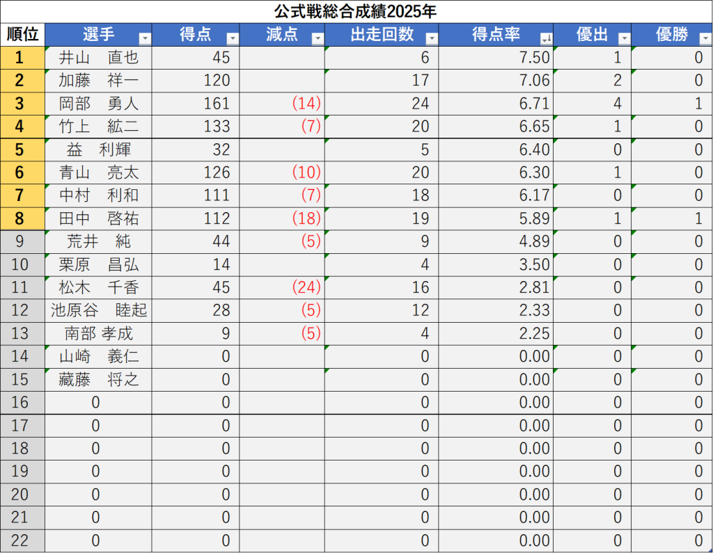 公式戦総合成績2025